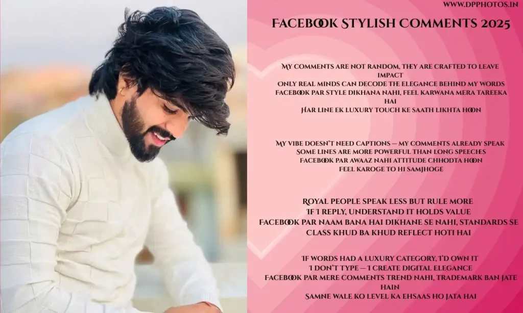 My dear friends, heartfelt greetings to all of you! If you love posting attractive, classy, and eye-catching comments on Facebook, then you have reached the perfect destination. In this guide, I will share the most impressive Best Facebook Stylish Comments, along with Facebook Stylish Comments 2025, Facebook Stylish Comments copy, Facebook Stylish Comments text, and even a complete Facebook Stylish Comments list — so your comments can instantly stand out, grab attention, and leave a lasting impact on any post.